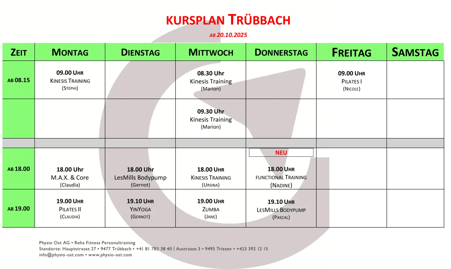 Anmelden kannst du dich: T: +41 81 783 38 40 oder per Whatapp: 079 488 29 05 oder per E-Mail: fitness@physio-ost.com